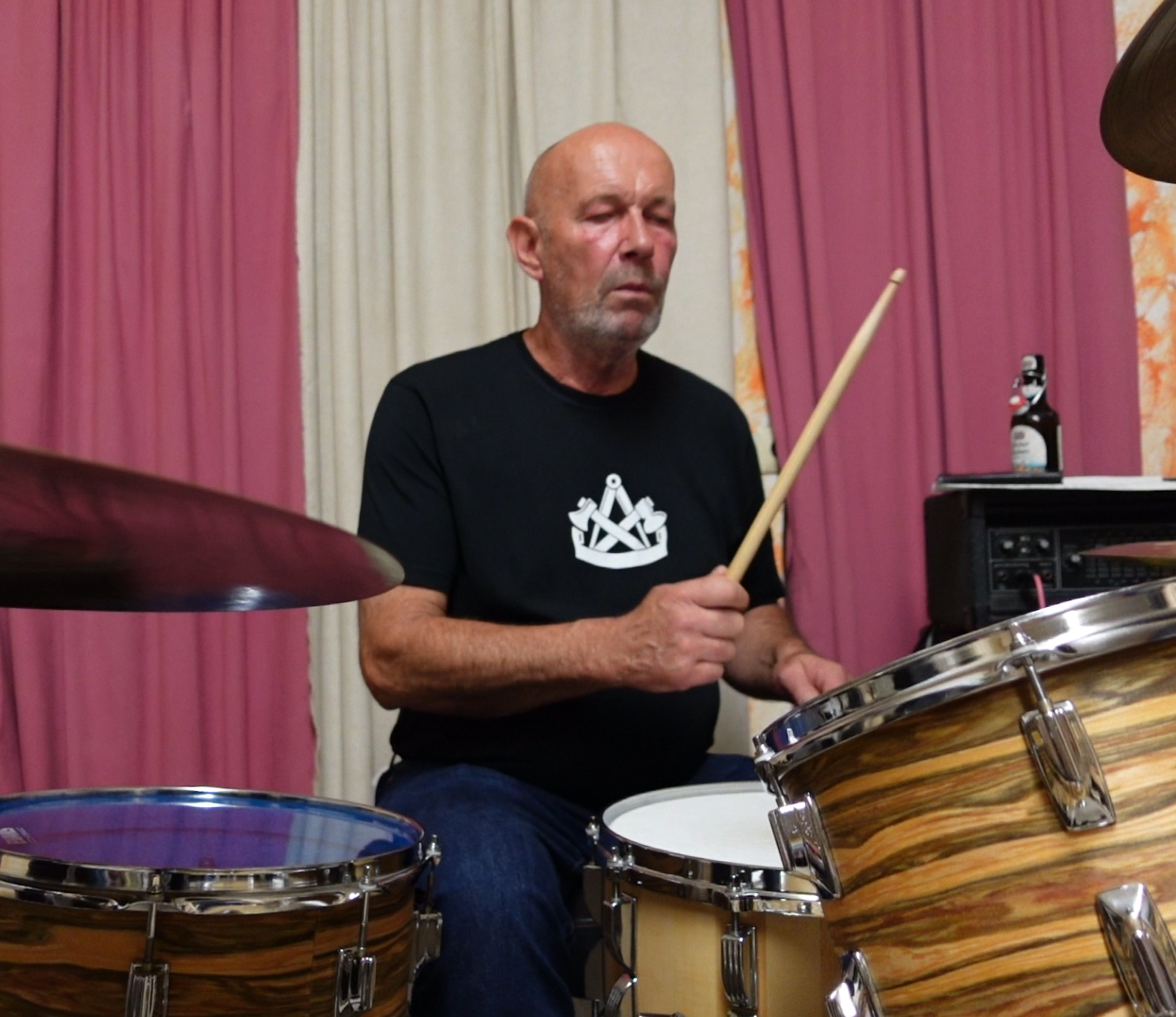 Klaus ist das rhythmische Herz der Band. Mit seiner langjährigen Erfahrung in Bands wie Live Voice oder KauBoys sorgt er für den treibenden Groove, der den Sound der Band unverwechselbar macht. Seine energiegeladenen Beats und seine Präzision am Schlagzeug bringen jede Bühne zum beben. Wenn Klaus hinter seiner Schießbude Platz nimmt, ist klar: Hier spielt ein Profi, der die Bühne liebt und lebt.